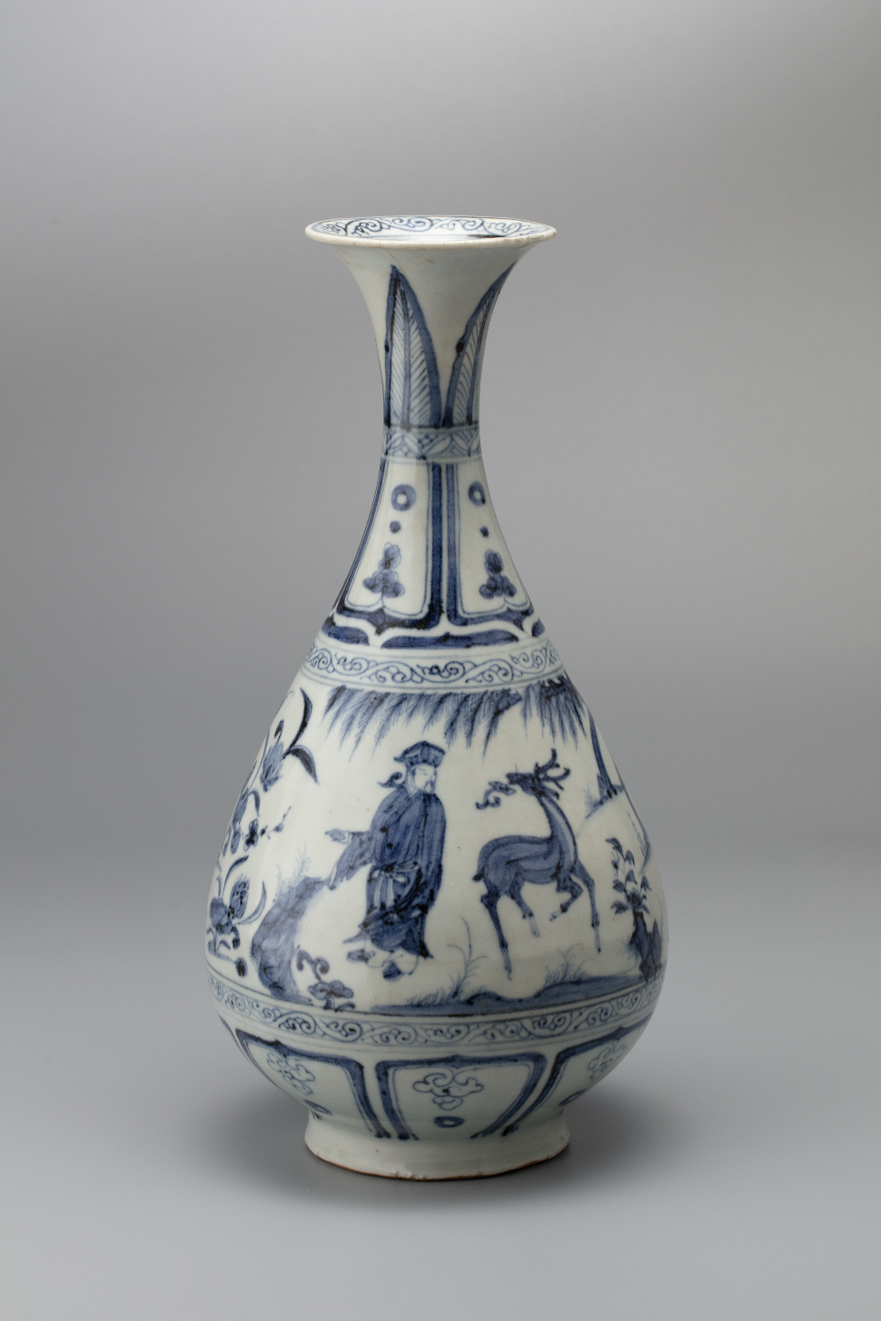 元代青花东说念主物图玉壶春瓶,是中外文化和会的结晶。玉壶春瓶动作经典器形,在元明时间的外洋千里船中屡有发现,如韩国新安千里船出水的龙泉窑玉壶春瓶,以及有记录的最早到达欧洲的中国瓷器——丰山瓶等。该瓶图案丰富,档次分明,是中西文化交流的典型产物。