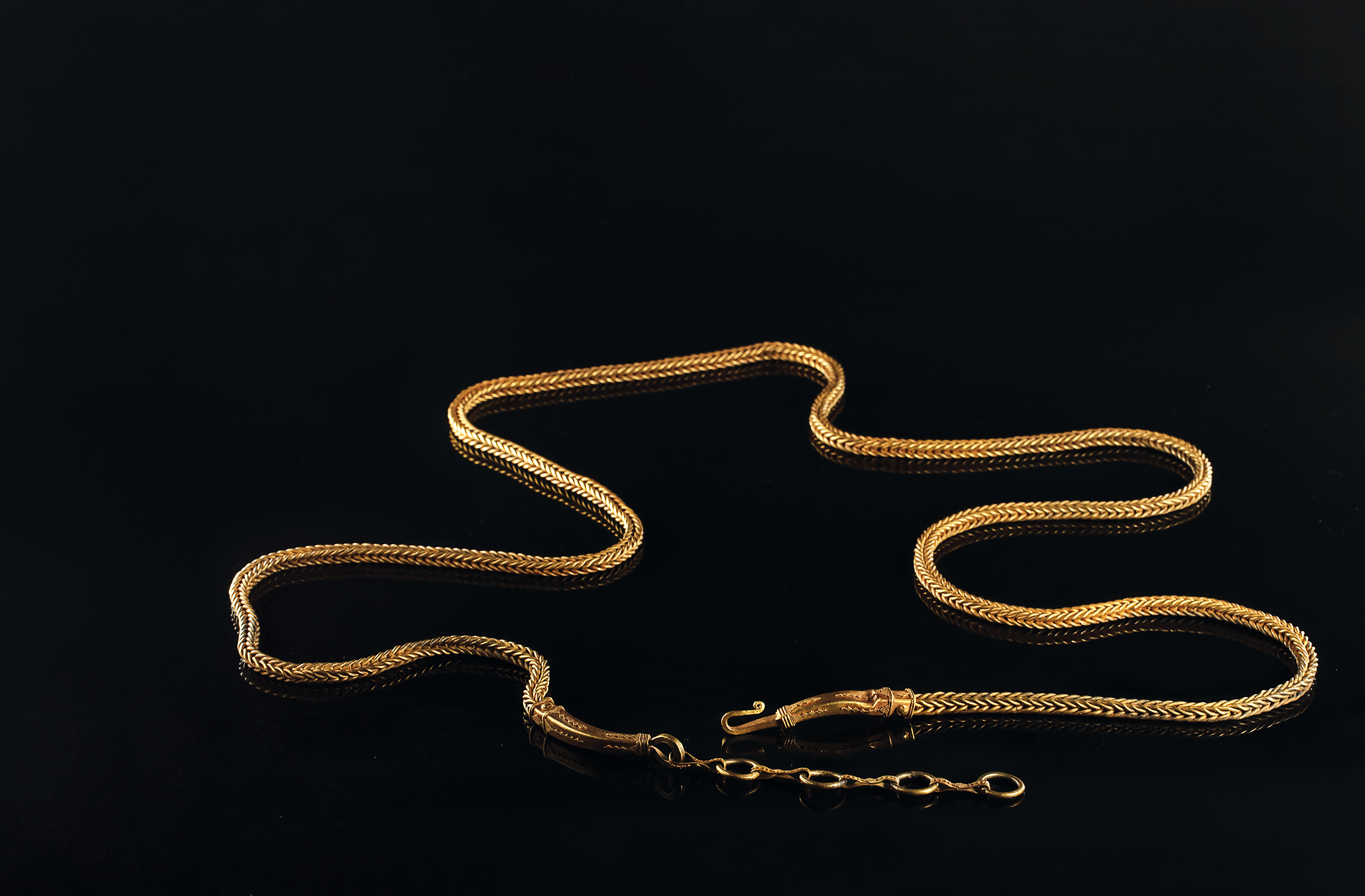 金项饰的带钩和搭扣有隐微的使用印迹,标明它应该不是船上的货品,而是个东说念主使用的金饰。它的主东说念主可能是外宾或外商,身份尊贵且具有越过的经济实力,那时正随船复返西亚地区。金项饰是海丝兼具买卖和文化交流双重属性的见证。