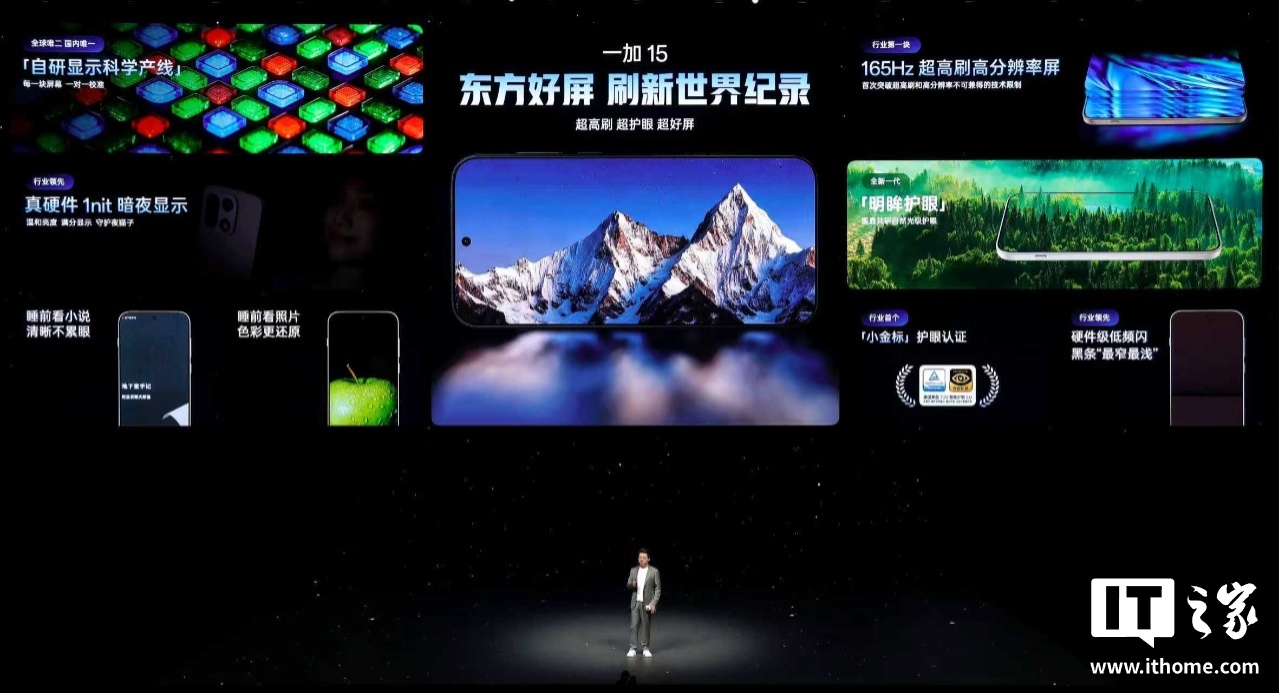 一加 15 内行首发第三代东方屏 —— 内行首块 165Hz 高鉴识率屏幕:首批适配微信、QQ、小红书、微博四款头部图文类愚弄;定制 X3 发光材料 + P3 屏幕芯片,国内独一「自研显露科学产线」,中枢显露见解超 DisplayMate A++ 次第;安卓首批、行业跳动全场景「真硬件 1nit 暗夜显露」;行业最低频闪发扬,SVM 小于 0.12;硬件级低蓝光;内行首获「小金标」护眼认证。