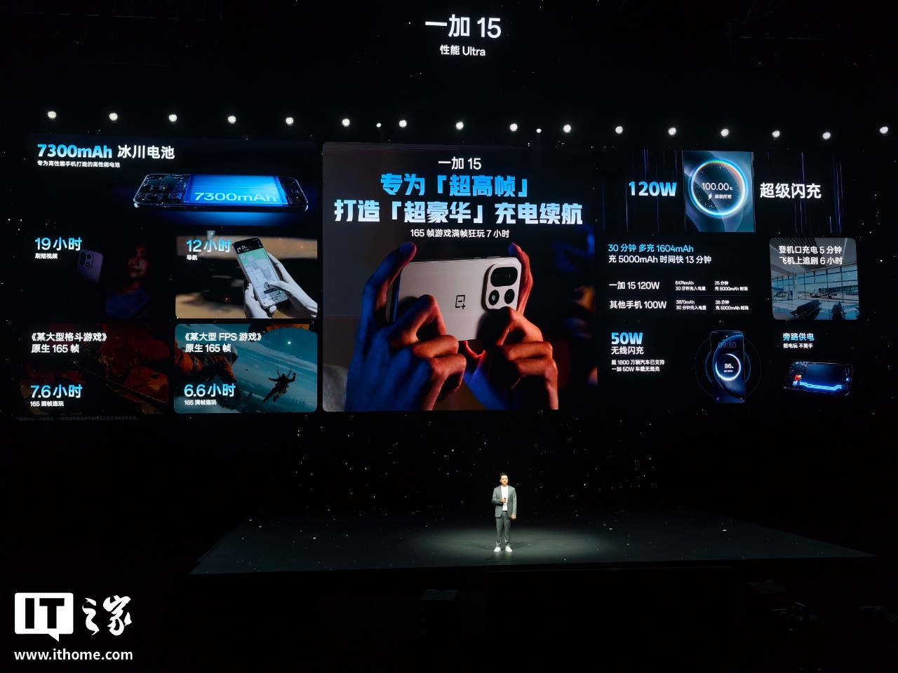 一加 15 手机搭载 7300mAh「冰川电板」,领有年度主流旗舰独一「120W 超等闪充」+「50W 无线闪充」组合,堪称“史上最豪华充电续航组合”,30 分钟多充 1604mAh,充 5000mAh 时辰快 13 分钟;充电 5 分钟,追剧 6 小时。