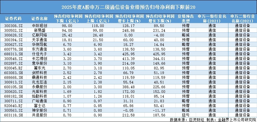 通讯开垦范畴相通多点着花,出生了以“易中天”为代表的行业龙头,事迹表现优异,以新易盛为例,该公司预测2025年度归母净利润区间为94亿元至99亿元,同比增长231.24%至248.86%。其暗示,受益于大家算力投资的捏续增长,高速度光模块家具需求快速提高,平直带动公司销售收入和净利润大幅增长;中际旭创预测2025年净利润98亿元至118亿元,同比增长89.50%至128.17%;天孚通讯预测2025年度归母净利润为18.81亿元至21.5亿元,同比增长40%-60%。