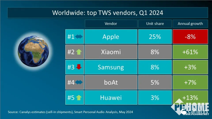 Q1季度宇宙真无线耳机(TWS)商场呈现慎重的增长态势开云体育(中国)官方网站,出货量达6500万,同比增长6%。